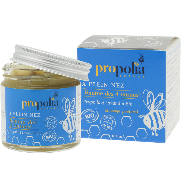 Dieser Balsam mit frischem Duft aus Südfrankreich, der Propolis und ätherische Öle kombiniert, ist ideal, um den Brustkorb zu massieren und die ganze Nacht von den Vorteilen seiner Inhaltsstoffe zu profitieren.